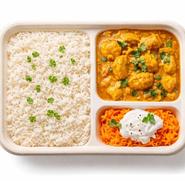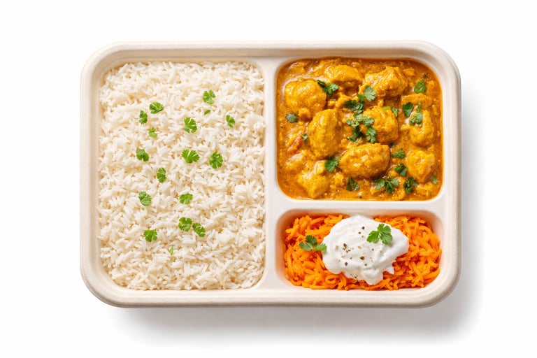 Riz parfumé avec poulet au curry doux.